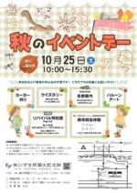 学び・体験EVENT イベント 秋のイベントデー 申し込み不要 開催日時 2025年10月25日(土) 10:00~15:30 開催場所 掛川市吉岡彌生記念館 対 象 どなたでも 参加費 無料 生家案内、クイズラリー、バルーンアート、ヨーヨー釣り、救命救急体験など、当館ボランティアによるおもてなしイベント PDFダウンロード チラシ 一覧はこちら archive 2025 2024 2023 2022 2021 2020 2019